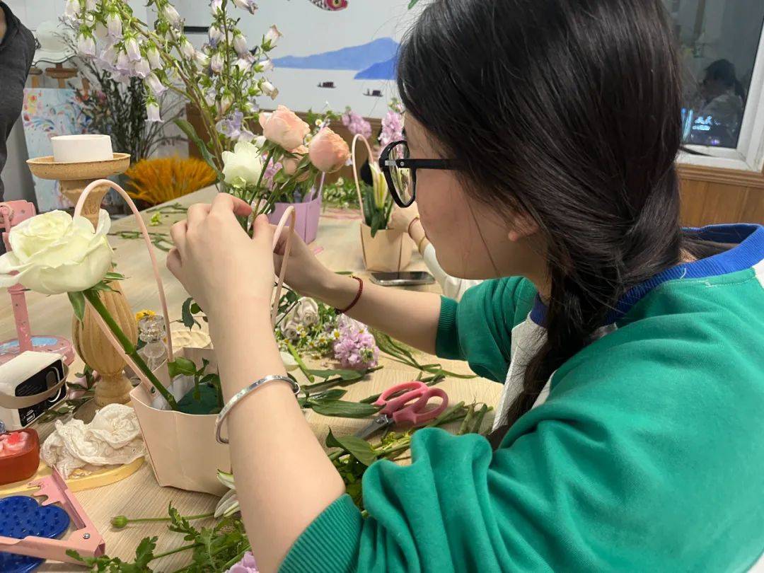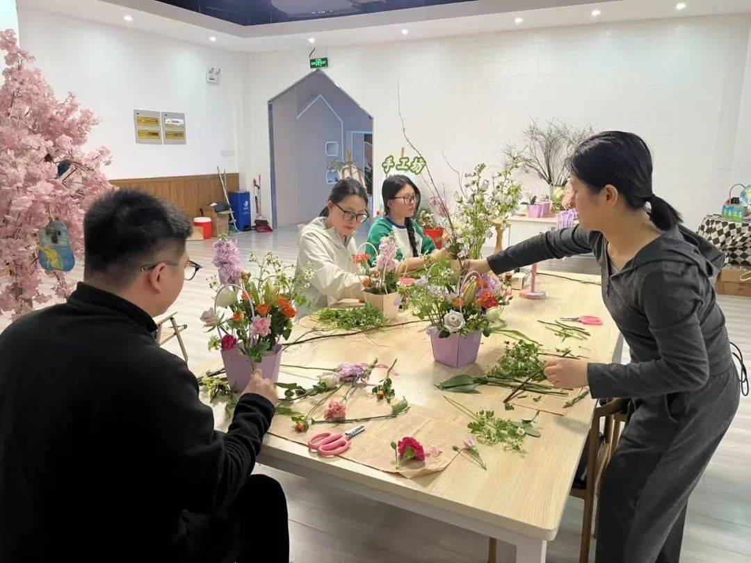 活动开始,花艺师为青年们讲解了基础花艺知识,从花材选择、色彩搭配到造型技巧,一步步带领大家体验插花的乐趣。青年们发挥创意,将百合、康乃馨、紫罗兰、玫瑰等花材巧妙组合,创作出独具个人风格的插花作品。花艺师还以自然与生活“为灵感,指导青年用插花记录心中的美好。