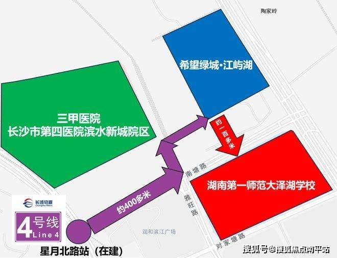 河西唯二公立三甲综合医院:长沙市第四医院滨水新城院区,就在项目周边,为健康护航。