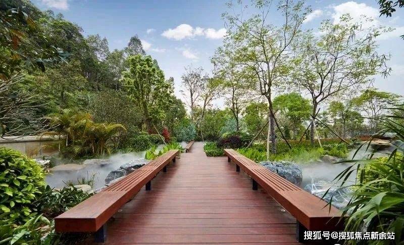 其承大国之院落,取云山之厚重,打造现代版履道坊——花溪谷,绿植山体环绕,重点打造瀑、潭、溪、涧、湖等不同形态的水景,配以桥、亭、阶、坡景成就一座院藏云山的大美园林。