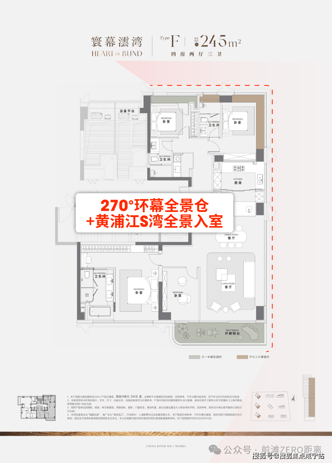 建面约230-285㎡「环幕江景舱」,以“270°无界平层”结构打破传统空间边界,3.3米层高(部分户型)配合全景落地窗