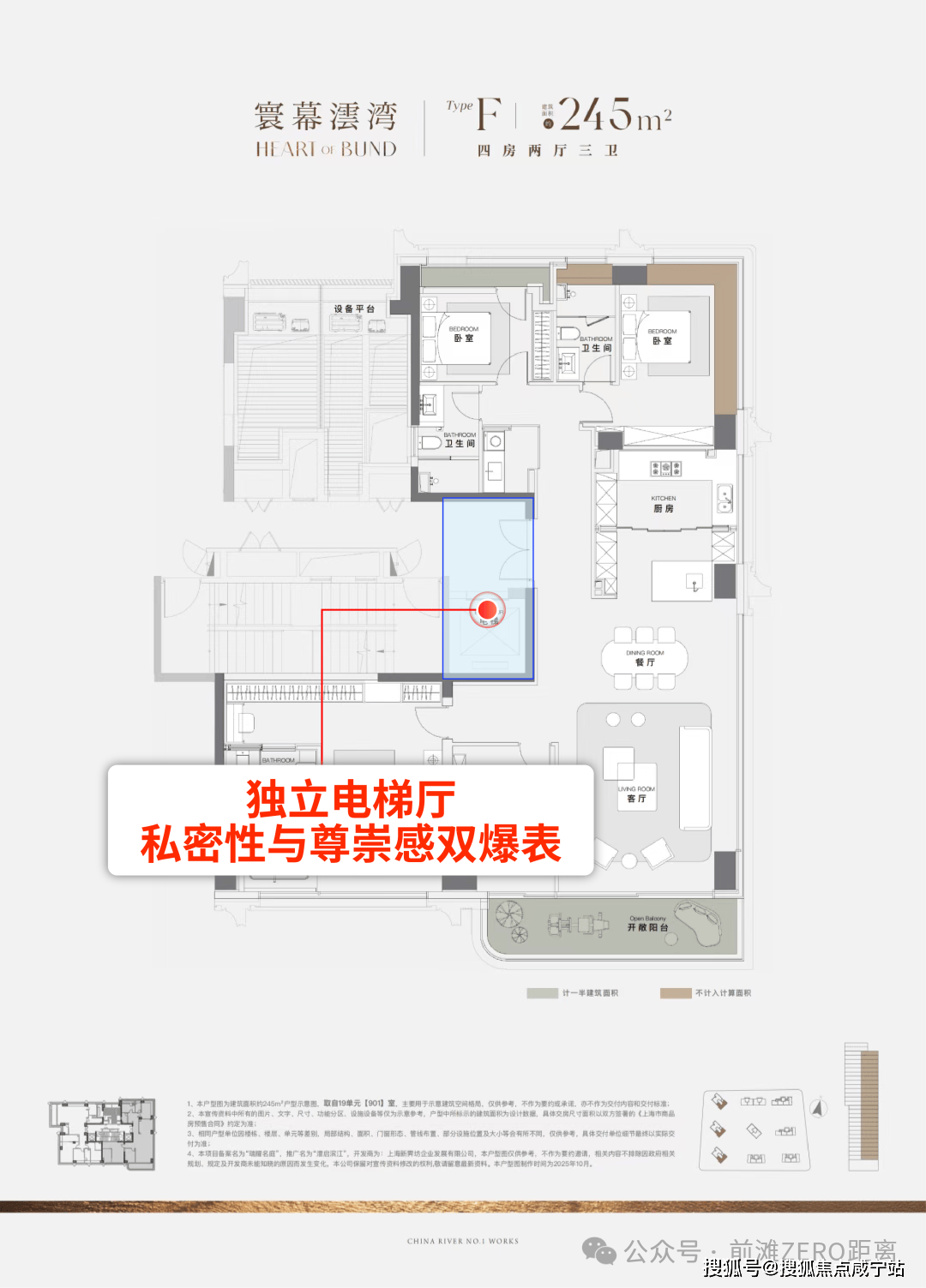 设计背书由问鼎国际大奖的著名设计师吴滨操刀,延续其“汤臣一品5亿顶复”的“摩登东方”理念。以黄浦江为灵感,营造“阅尽千帆后的宁静与松弛感”。通过8.5米南向宽厅、270°环幕玻璃