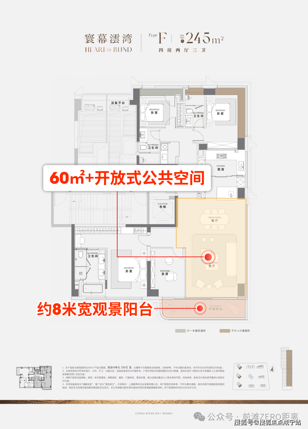 超过60平米的开放式空间(客厅、餐厅、X空间、阳台一体化),功能灵活,可满足大型派对或家庭休闲,尺度感直接媲美原来350㎡的滨江户型。