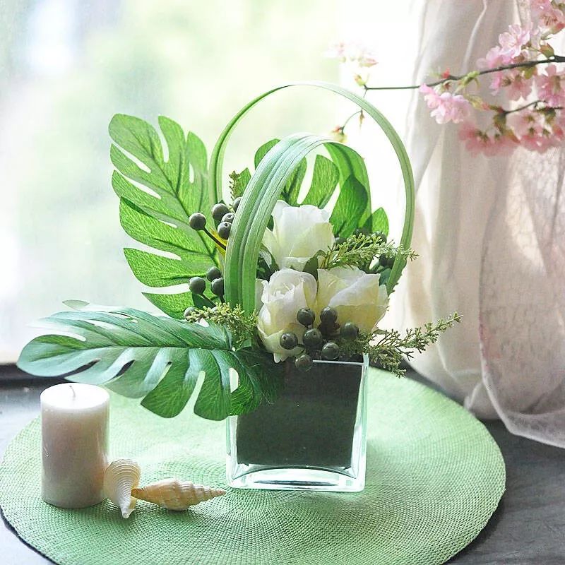 插花过程中,叶子也是不可缺少的表达方式。在绿叶的衬托下,花的芬芳似乎更浓烈一些。