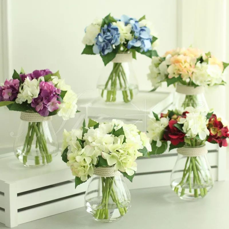 再不济,用一枝大绣球一样的花,一个洁净的玻璃瓶,简单的白石子,就插出了高级感。