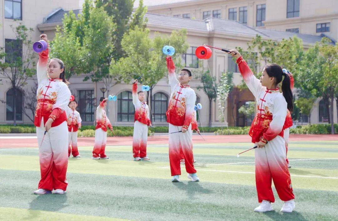 在悦来湖小学操场,数十名学生手持空竹,在专业老师指导下练习“抬头望月”。手腕轻抖,空竹嗡鸣旋转——如今,空竹、剪纸、得胜鼓等非遗项目也已走进多所学校,成为深受欢迎的校本课程。