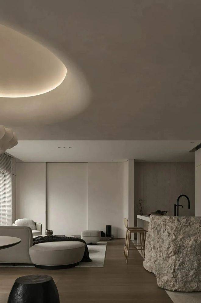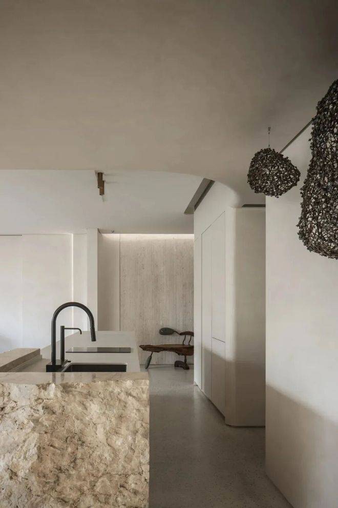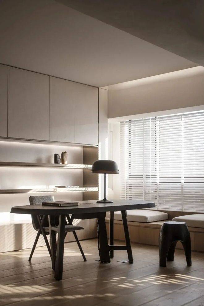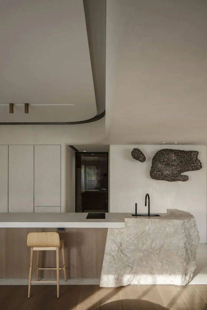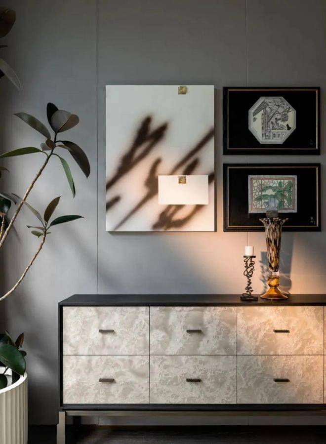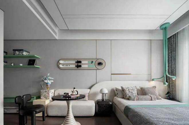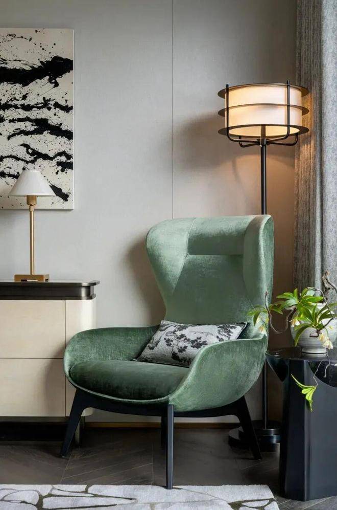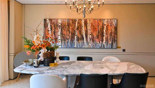 展示空间中的软装极富艺术趣味,比如青铜雕塑《我心飞翔》、玄关油画《飞翔的羽毛》、野崎信次郎《彩の花束》,大师们的真迹为空间注入高雅艺术底蕴,而儿童房的Qeeboo兔子椅则匹配孩童特性充满童趣。