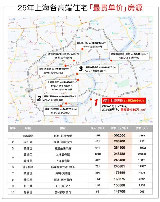 ·2025年上海目前各高端住宅「最贵单价」房源30.27万/㎡(3-22-1902,数据来源近两年开盘项目一房一价表)