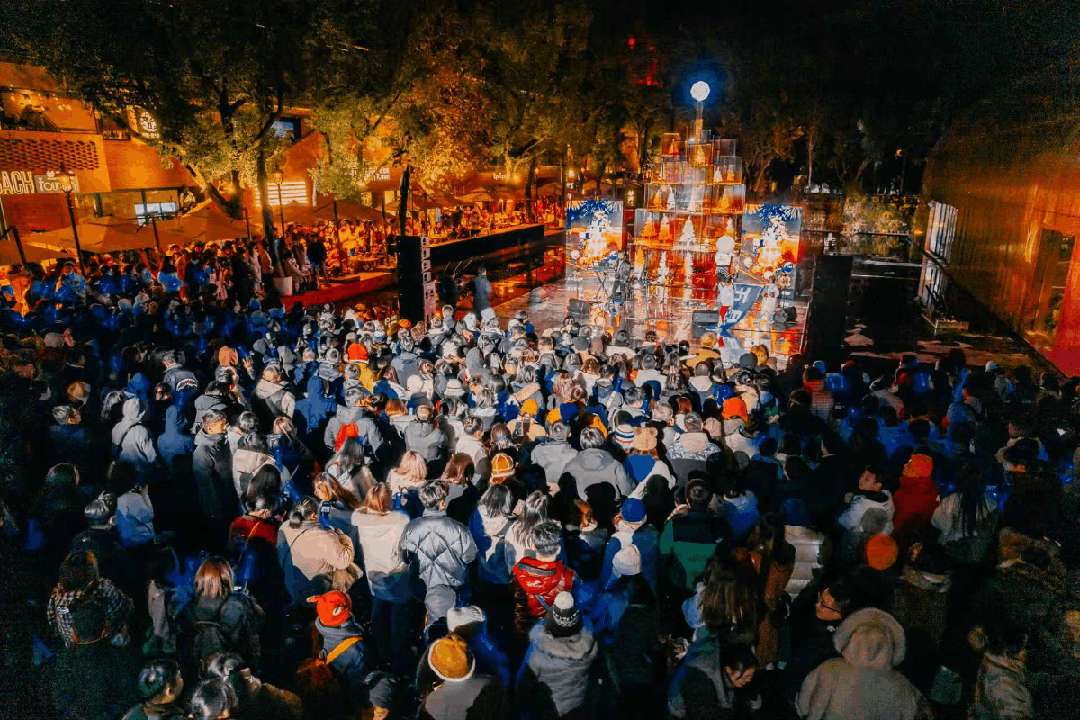 据不完全统计,项目2025年举办了270余场活动,类型多样,有效覆盖了亲子、宠物、年轻、家庭客群。比如项目中标志性的水面,几乎每月都会带来不同的演出活动,“心愿之光”圣诞树也一度非常出圈。