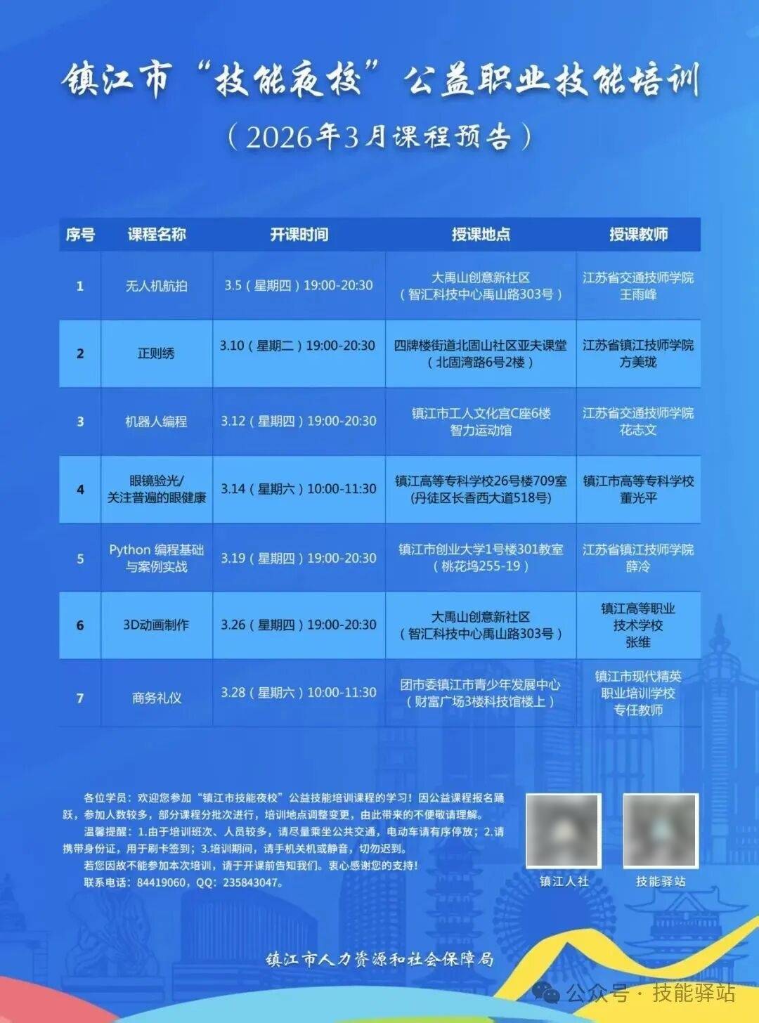 从指尖花艺到盏间茶香,从硬核科技到实用技能,镇江技能夜校2月课程既为市民新春生活增添了别样文化滋味,也为不同群体的发展注入了充沛的技能活力。一直以来,镇江市“技能夜校”始终紧扣群众技能提升需求与“四群八链”产业发展导向,以“技能赋能民生、培训促进就业”为核心宗旨,不断优化课程设置、创新教学模式,让技能培训走进群众生活、贴近产业需求,成为市民提升自我、就业创业的“移动充电站”与“成长加油站”。