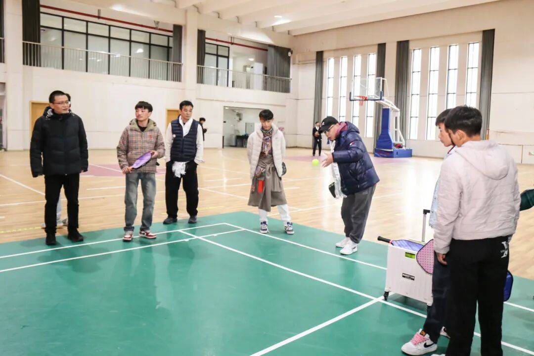现场最受同学们追捧的,当属匹克球运动环节,会客厅将有趣的匹克球运动带到学子们身边,成为活动现场的“人气亮点”。教练员手把手示范发球、击球、拦网动作,同学们迅速点燃热情,拿起球拍积极参与,在挥洒汗水的过程中舒展身心,感受运动的活力,收获健康的快乐。