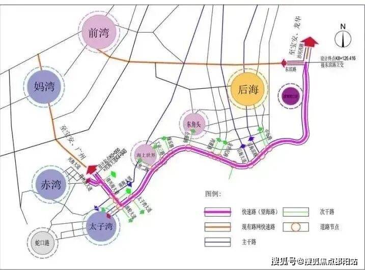 ,将极大提升片区通达度,改造已于2021年开工,工期预计为72个月,其中微波山隧道导洞已顺利贯通,预计今年10月完工。望海路将改造为“地下快速路——地面主干路”的复合通道。望海路快速通道西起兴海大道,东接沙河西路,途经太子湾、海上世界、蛇口老城、后海填海区等片区,全长约8公里。据悉,望海路改造将分为地下、地上双层道路,其中,地下道路定位为城市快速路,地面道路定位为城市主干道。建成后,蛇口半岛将形成快速环路,对外出行时间平均缩短15分钟以上,为整个南山区,尤其是前海蛇口自贸片区提供更加高效、快捷的对外联系通道。望海路由目前的双向4车道,