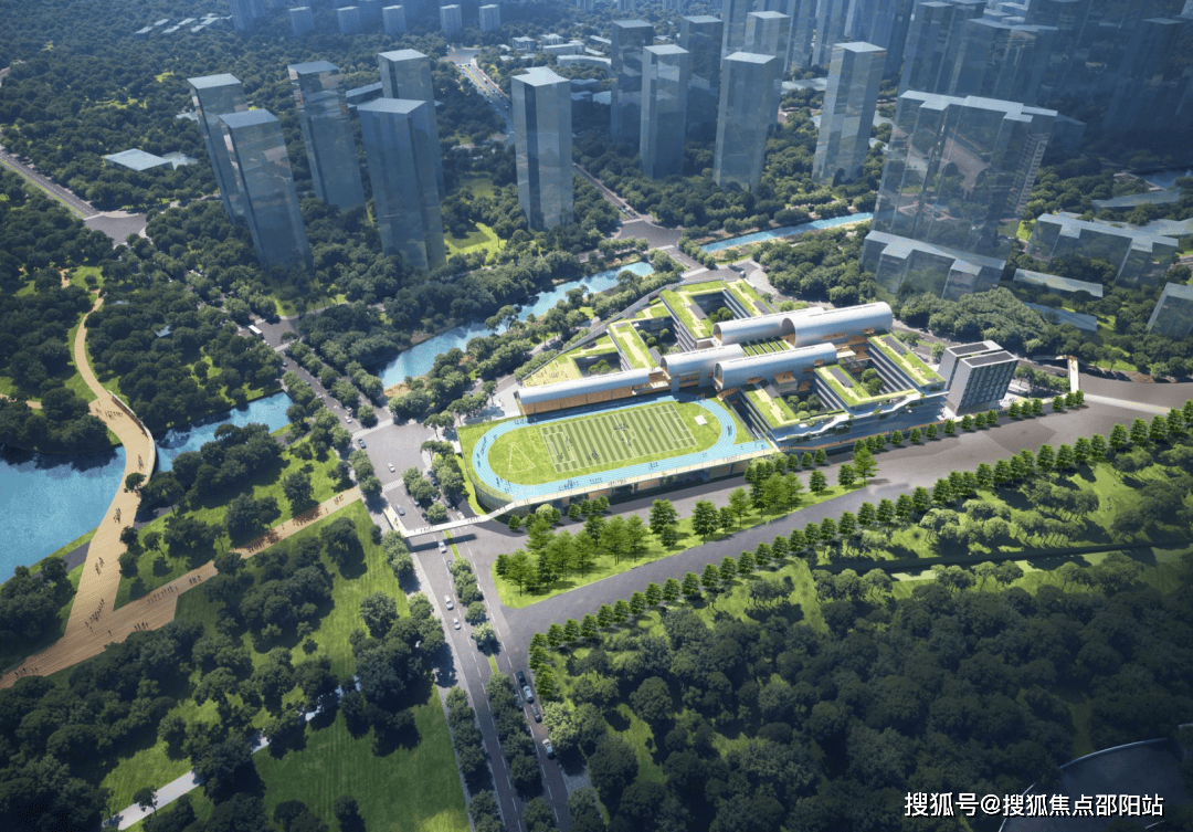 设计方希望在海湾边打造一座充满浪漫气息的活力校园,成为海湾景观带中的一处生态节点,同时也积极面向城市服务社区,成为湾区教育空间的新标杆。基于场地现状与城市空间的关系,设计方采用扩展的建筑轮廓,对不规则场地进行最大化利用,通过形成庭院,以获得更好的采光以及观海视野。同时采用打造西侧中心路海湾轴线的最后一处城市节点,与城市环境互动。四处庭院之间进行立体联通,形成更为整体而富有变化的建筑空间和各种室内外运动空间及游憩场地。
