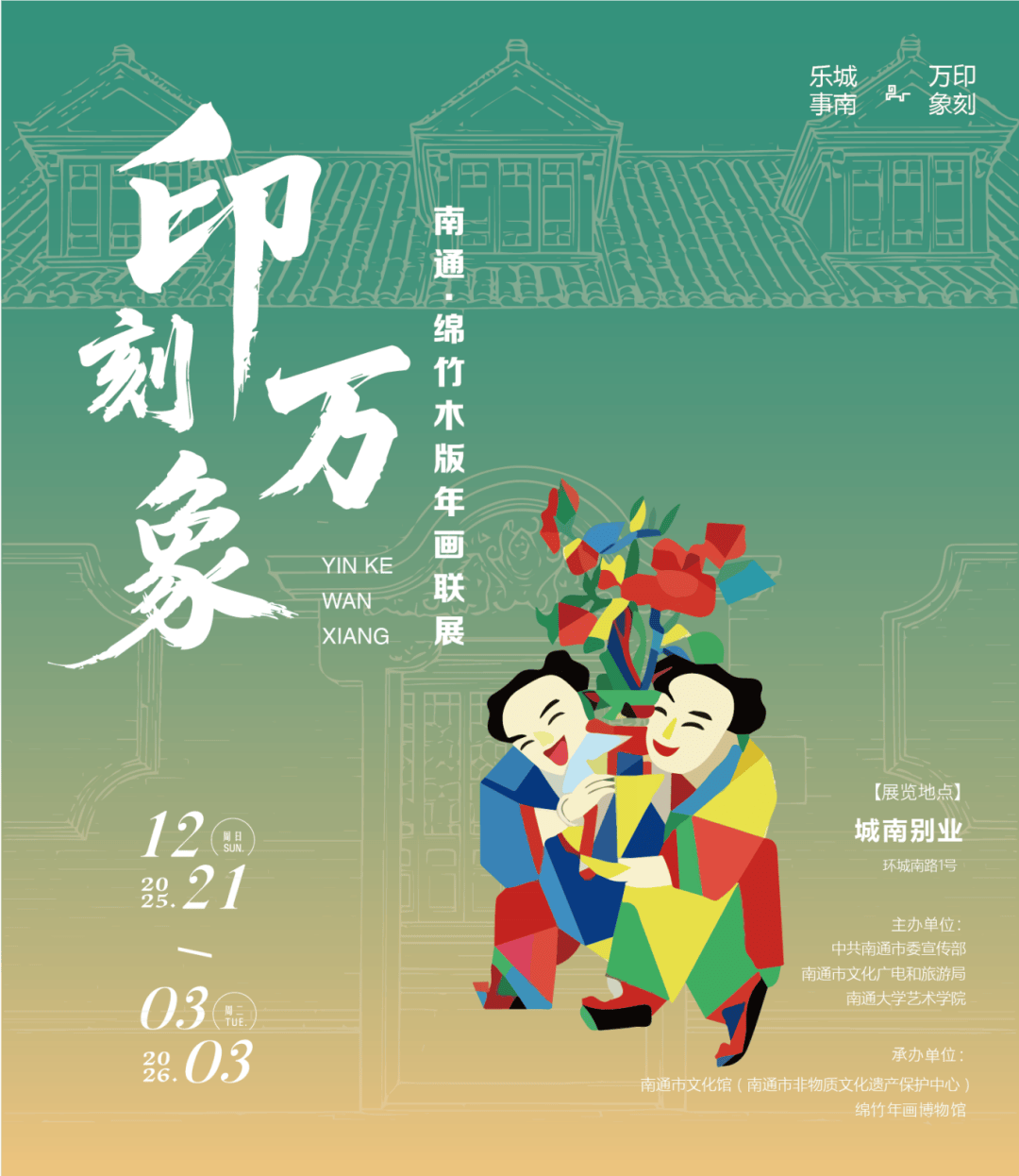 展览汇集南通、绵竹两地木版年画精品,涵盖祈福纳祥、民俗生活、历史故事等经典题材,展览期间同步开展传承人交流分享、年画拓印体验等互动活动。