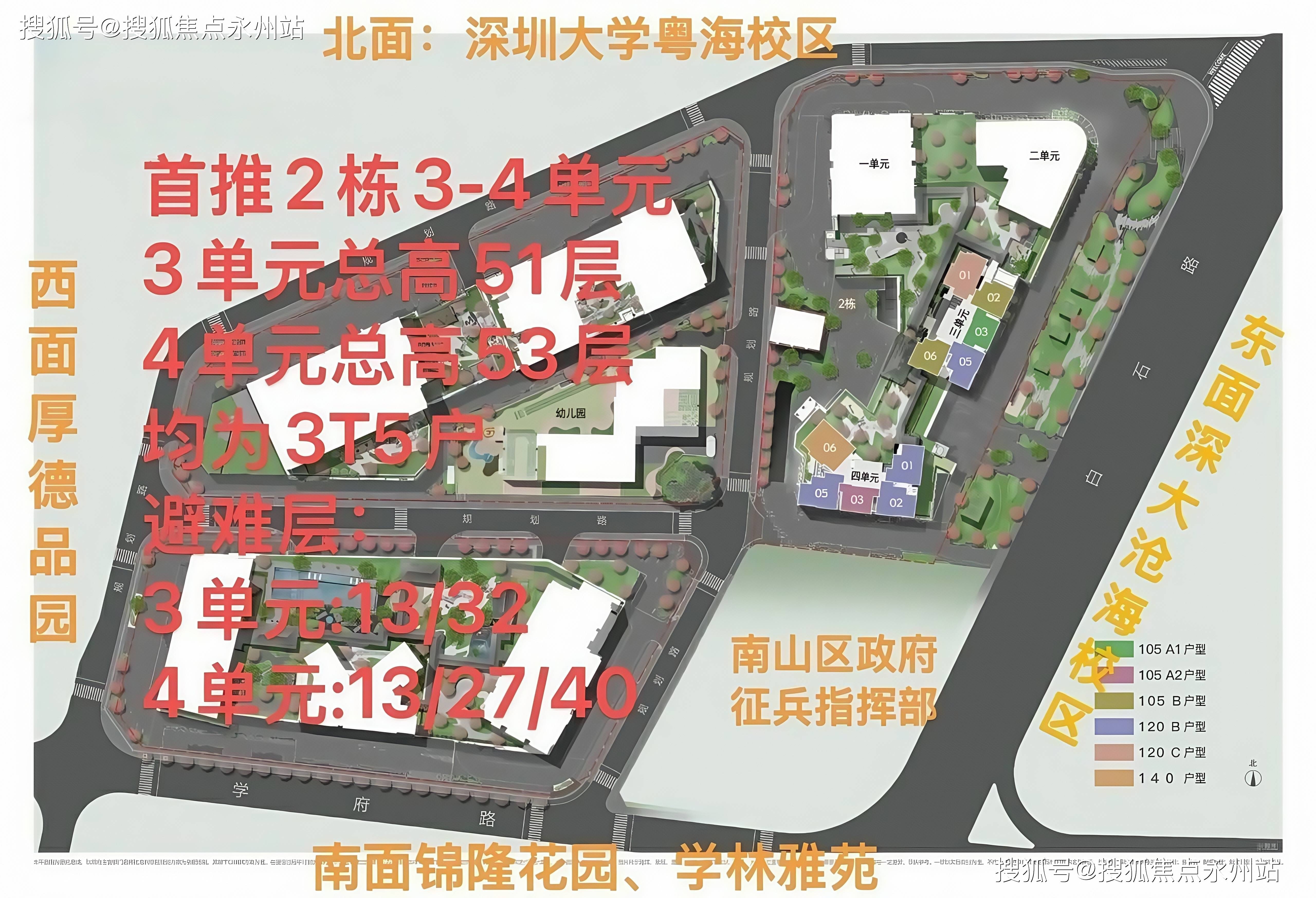 景观与采光:西南或东南朝向,三面采光无遮挡,高层可同时俯瞰深大校园和深圳湾海景,部分房源直面小区中央花园。