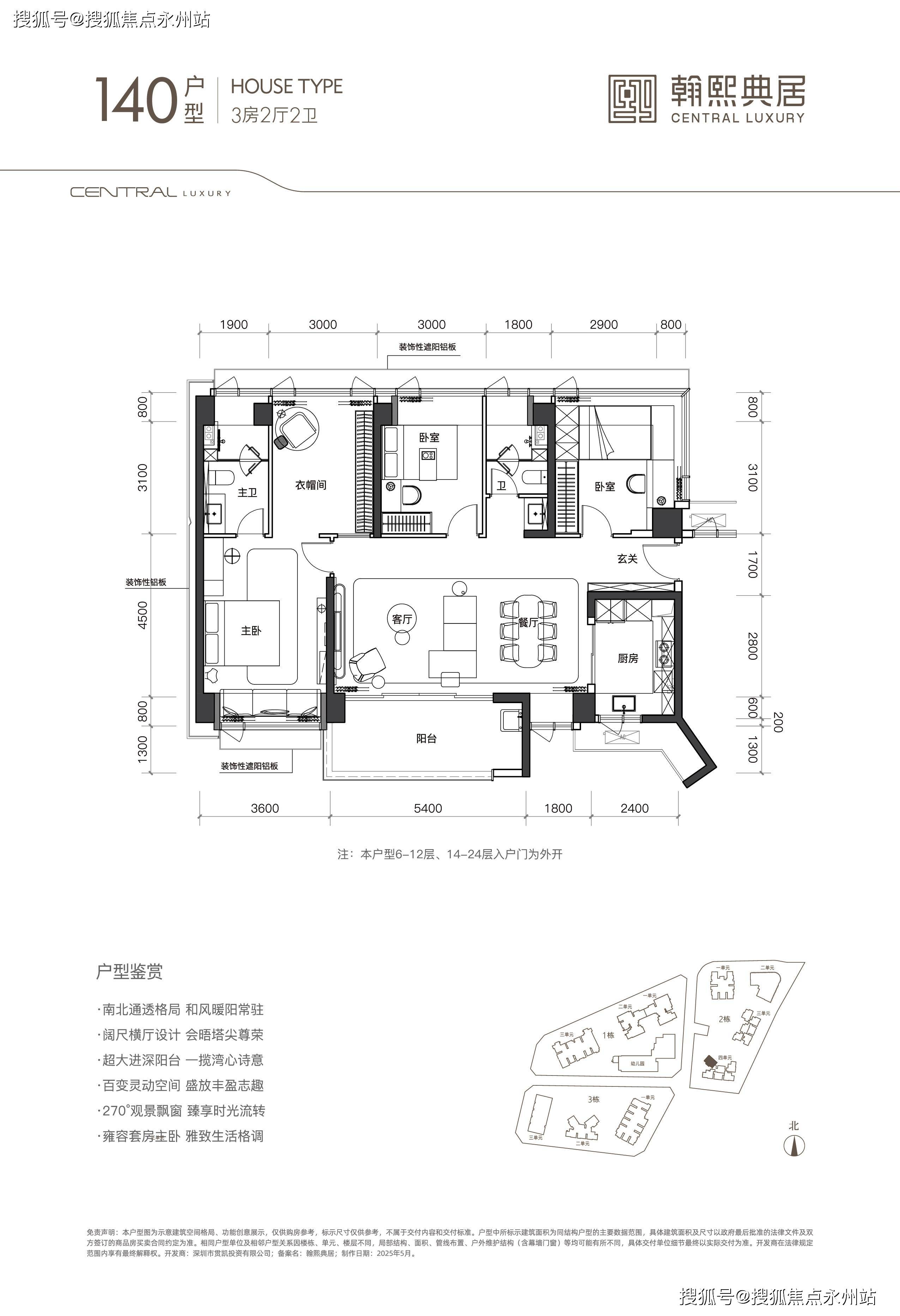 140㎡3+1房2卫:南北通透,横厅32㎡,主卧40㎡,折后总价约1457万起(单价10.4万起)。